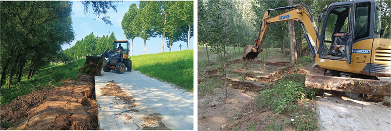 仲夏时节,黄河济阳段水势奔涌,涛声迭起,烈日似火,暑气正盛,挡不住一线治黄人果断的脚步。自入汛以来,济阳黄河河务局济阳办理段全体职工紧盯防汛备汛取工程养护不放松,正在骄阳下巡堤查险,正在高温中整修护岸,以汗为墨、以堤为卷,于奔腾的河畔持续绘就新时代黄河管理的图景。“夏日是杂草快速发展的期间,长势迅猛,不只影响了我们防汛查险工做的开展,也了工程的全体面孔。”为分析提拔堤坡草木发展面孔,确保正在防汛环节期间阐扬应有的防冲结果,常斌率领世人明白分工、协同共同,组织专项打草功课,推进堤坡养护。根据工程各区域高秆杂草的品种特征取长势差别,量身规划除草策略,科学合理调配拖沓机式打草机、背负式打草机及锄头,确保办理范畴内所有高秆杂草尽数断根,切实强化堤坡防汛防护能力。老职工郝兵蹲身拔起一撮草根细心查看,他着大师,“根系清理必需完全,否则雨水一冲又得长成一片。”经清理整治,坝面清洁规整,工程面孔显著改善,无效消弭了杂草根系对坝体布局的现患,切实保障了水利工程的持久平安取不变运转。